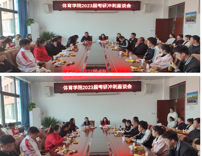 体育学院始终高度重视考研学生指导和服务工作,此次考研冲刺座谈会以谈心谈话的形式,为考研学生解决所需,竭力做到多方位、多措施、多角度为考研提供良好的环境和条件,助力考研,再创佳绩。(文/图 燕鹏斌)