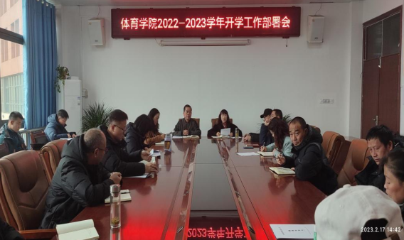 2月17日下午,体育学院2022-2023学年第二学期工作部署会在乐学楼225会议室召开,全体教职工参加会议,院长邓文红主持会议。