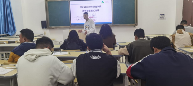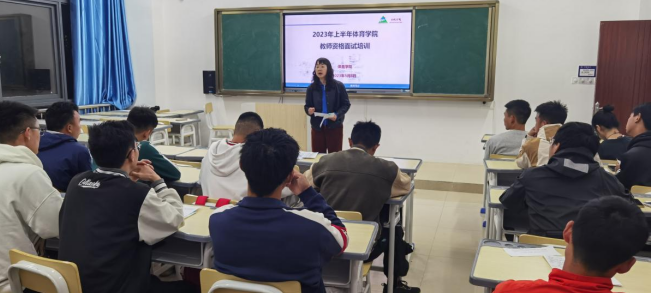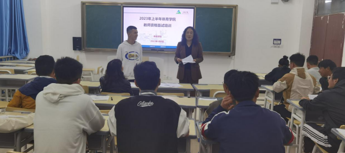 为贯彻新时代“三全育人”教育理念,提升学生教师资格证面试通过率。我院于2023年4月27日和5月8日在乐学楼J206教室开展2023年上半年的教师资格证面试为期二天培训工作,本次培训导师由体育学院院长邓文红、副院长刘宁担任,参加培训学生共近50人。