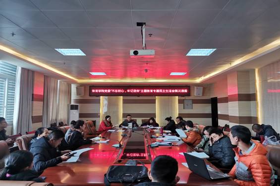 12月23日下午,体育学院召开“不忘初心、牢记使命”主题教育专题民主生活会情况通报会。会议由体育学院党委书记孙黔主持。