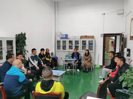 在关岭民族高级中学副校长龙明华、体艺发展中心主任王涛及体育组老师的陪同下,在体育组办公室召开座谈会。会议中,邓文红院长强调:“实习生在实习期间,要加强自身专业知识的学习,做到能学,能说,能做”;罗勇老师强调:“要以学生为主体,教学过程中遇到问题及时和指导老师或者其他老师沟通”;蔡烈老师强调“多方面知识学习,在教学中涉及的点是特别多的,我们不能只局限于自己的专项,得学习更多的创新点”。