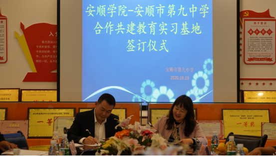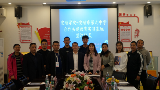 10月13日下午,安顺学院体育学院院长邓文红,体育学院党委副书记林金茹一行赴安顺市第九中学签订合作共建实习基地协议。安顺九中校长陈忠伟,副校长胡定祥等参加了签字仪式。