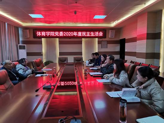 1月26日上午,中共体育学院委员会召开2020年度民主生活会,体育学院党委书记孙黔主持会议并作总结讲话,体育学院党委班子成员出席会议,科级干部列席会议,安顺学院副院长郭本华同志到会指导。