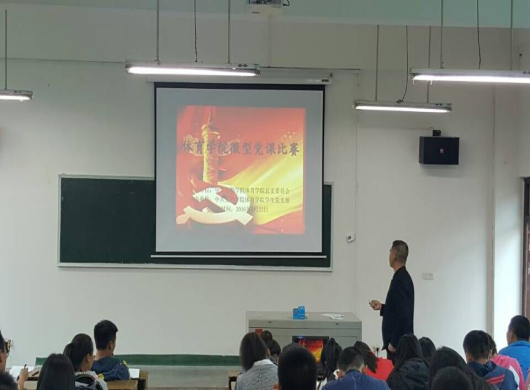 体育学院于2016年5月23日下午两点在电教楼A08教室举行了微型党课比赛。参加此次比赛活动的有体育学院辅导员田宇老师,体育学院团总支学生会主席王光磊、团总支学生书记谭碧海、组织部部长刘坤洋,以及参赛的各位选手和体育学院大一、大二所有的入党积极分子,大三的所有预备党员和党员等。此次微型党课比赛由体育学院团总支学生会组织部部长刘坤洋主持。