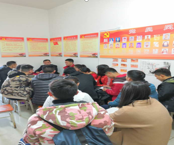 (图为田宇同志在为党员同志讲解党的相关理论)