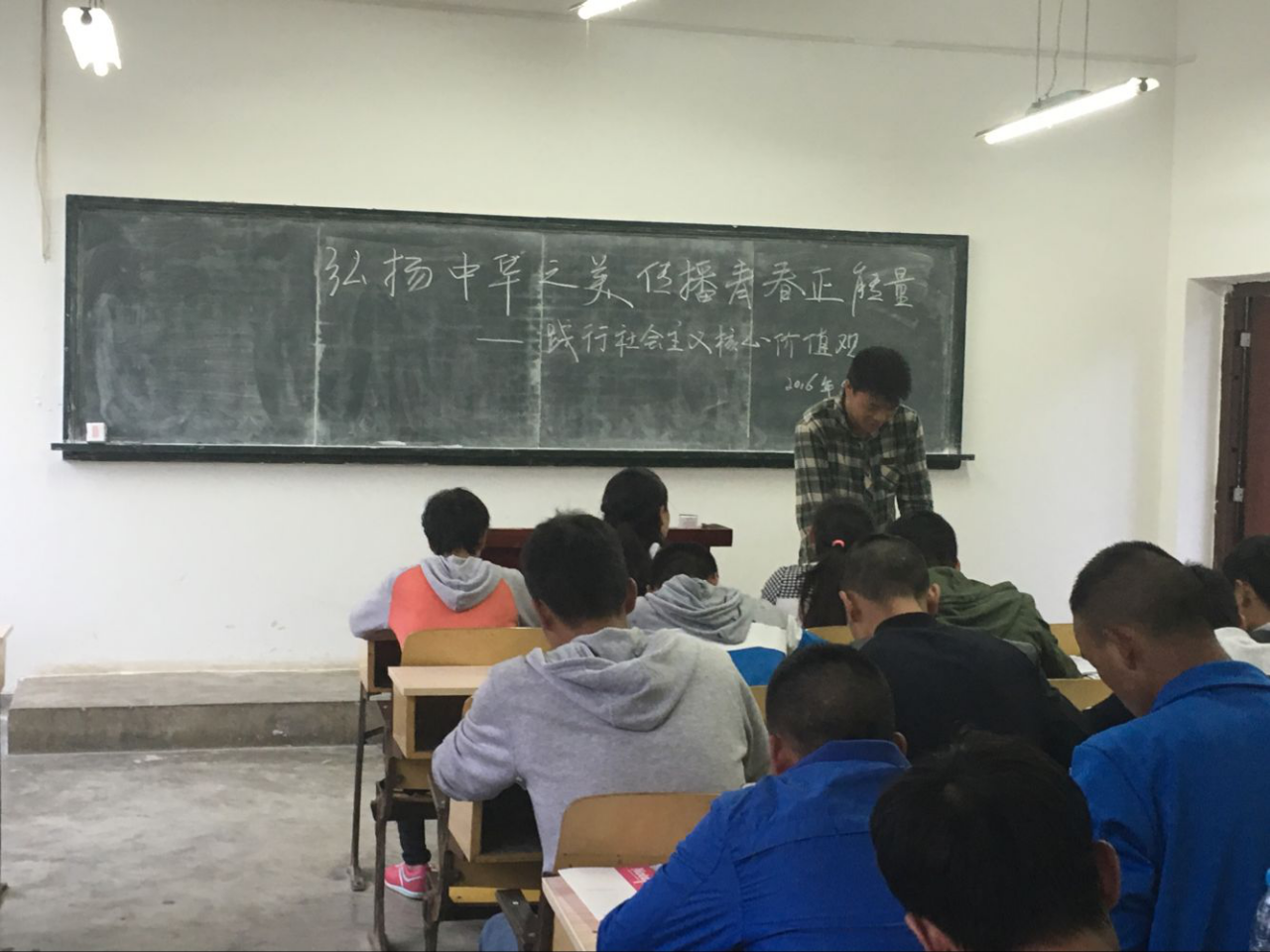 2016年5月25日弘扬中华之美,传播青春正能量,践行社会主义核心价值观在体育楼0621教室进行。主讲人体育学院团总支学生书记谭碧海。