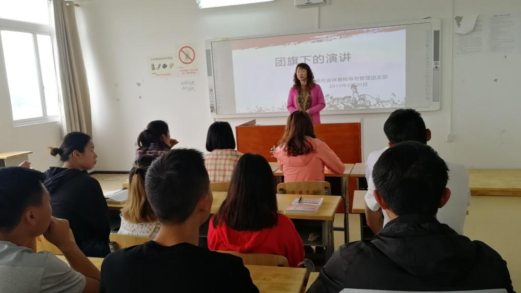 2019年5月20日8:30,2017级社会体育指导与管理班在特教0813教室召开了“党建带团建”主题班会--《团旗下的演讲主题班会》。参加人员有:班级导师、体育学院院长、党委副书记邓文红教授,17社体班全体同学。