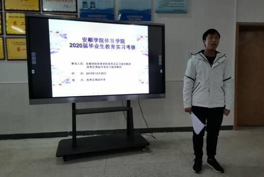 2019年12月26日至30日,体育学院2020届毕业生教育实习考核在安顺市西秀区高级中学举行,体育学院院长邓文红、党委副书记林金茹、实习指导老师李德斌、陈晓滇、韩志敏、沈萍、西高体育组全体老师参加考核工作。