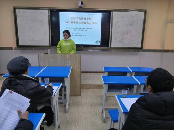 2020年12月23日-24日,体育学院2021届毕业生教育实习考核分别在安顺四中、幺铺中学、安顺市第二高级中学、普定县实验高级中学和安顺市实验学校举行,体育学院院长邓文红、副院长刘宁、党委副书记林金茹、实习指导老师张驰、夏洁丽、辛海峰、罗勇、陈晓滇、刘惠婷、沈萍、王崇、张明莉,各实习学校体育组全体老师参加考核工作。
