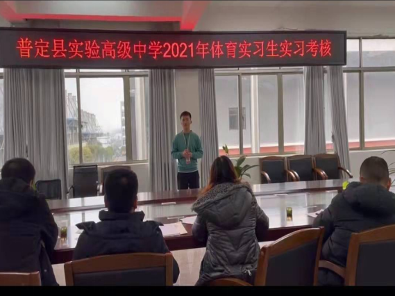 考核内容为说课。早上10:00所有实习学生在综合楼二楼会议室依次进行说课,说课结束后,院长邓文红对说课情况进行总结讲评,指出说课存在的问题并提出建议,对给与我们帮助与指导的学校老师表达感谢之情,对所有实习生提出希望和要求,希望在今后的学习中,加强学习专业知识,认真钻研教材教法,为今后从事教师职业打下坚实的基础。最后普定县实验高级中学校长卢启程对所有实习生的进步以及对学校开展体育工作的付出表示肯定,同时对学院表达了感谢,也对所有实习生提出了希望和要求。
