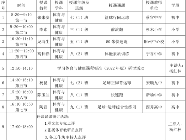为提高师范生教育教学水平,进一步加强高校与中小学的深度融合,推进体育理论教学与实践相结合,实现聚焦新课标,打造新课堂。2023年5月17日下午安顺学院体育学院2020级社体班全体学生在《学校体育学》任课教师邓文红教授的带领下到安运司学校参加西秀区中小学体育工作坊、校园足球工作坊联合开展的体育与健康课“聚焦新课标,打造新课堂”小初高衔接教学研讨示范课、公开课活动。