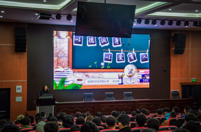 为贯彻加强师范生职业道德修养,积极提升教育实践能力,涵养人才培养的优良作风。2023年11月22日,我院邀请双阳小学副校长岳立辉老师在博学楼A-12教室举办主题《以德润身、以爱育人》的师德养成专题讲座。安顺学院大学公共体育教学部副主任刘宁老师及2021级、2022及全体同学们参加讲座,讲座由体育学院院长邓文红主持。