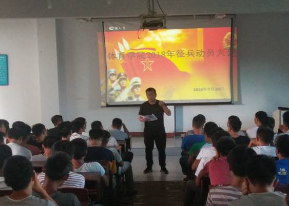 为进一步贯彻国家征兵政策,鼓励当代青年积极响应国家号召,应征入伍。7月10日下午6:30,体育学院“2018年征兵动员大会”在安顺学院电教楼0941召开,出席本次会议的有体育学院党总支书记孙黔、学生科科长谢迪、专职辅导员田宇以及体育学院全体男生。本次会议由田宇老师主持。