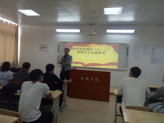 2018年9月18日,体育学院在特教B0513开展“纪念九一八 勿忘国耻”爱国主义教育活动。由团总支书记田宇老师向同学们介绍了九一八事变的经过,他用精心制作的课件和声情并茂的话语向学生讲述了无数先烈拋头颅、洒热血、前扑后继的英雄故事……教育了学生要热爱祖国,热爱生活并积极学习英雄人物的爱国主义精神无私奉献的精神。