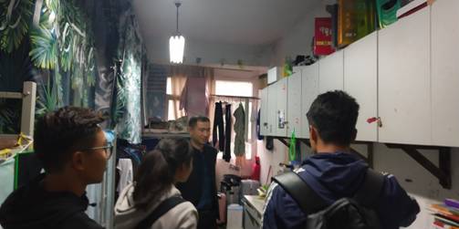 团总支书记田宇老师走访学生宿舍