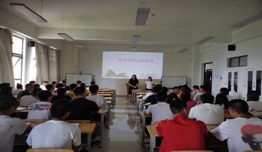 9月7日下午15:40在实验大楼体育学院生理实验室召开了“考研宣讲”的主题班会,刘宁院长从同学们面临的就业压力,如何提升学历才有就业竞争力谈起,鼓励同学们报考研究生,明确考研目标,规划好这一年多的复习时间,做好考研的各项准备工作。班主任陈晓滇老师也再次做工作、鼓励同学们考研,使本班的报考率不断提升。