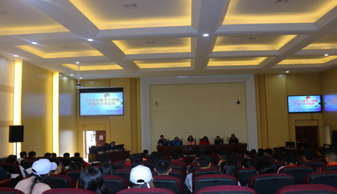 2019年3月30日至31日,安顺市篮球裁判员三级培训班开班典礼及培训在我校新教A11模拟法庭阶梯教室进行,出席本次活动领导有安顺市体育局局长赵雯、体育学院刘宁副院长等,全体培训学员参会。此次裁判员培训班的成功举办有力的提高了安顺市篮球裁判员的执裁水平。