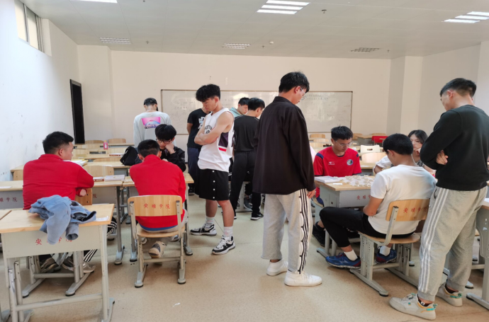 为弘扬中华传统文化,营造安顺学院象棋特色文化氛围,丰富同学们的课余文化生活,增进象棋爱好者之间的交流,进一步提高棋艺水平。2021年6月4日晚七点体育学院在特教0513教室举办了体育学院第五届寝室文化节之象棋比赛,体育学院学生积极参与。