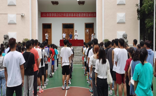 为了迎接2021刚进入大学的新同学,加快新老同学之间的相识和促进同学之间的友谊。体育学院于2021年9月15日中午12:30,在礼堂篮球场举行了“篮球基本功暨迎新篮球比赛”的开幕式。参加此次开幕式的人员有:体育学院党委书记孙黔、专职辅导员田宇、裁判组组长金钊和各班参赛运动员。本次开幕式由田莲俊主持。