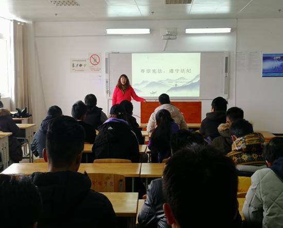 2019年11月29日,体育学院2017级社会体育指导与管理班在特教大楼B1107教室开展“尊重宪法、学习宪法、遵守宪法、维护宪法、运用宪法”主题班会,本次班会由班级导师、体育学院院长邓文红教授主讲。