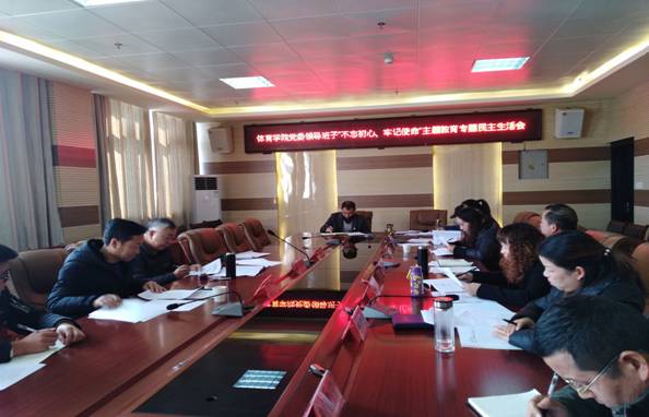 12月10日上午,按照学校党委“不忘初心、牢记使命”主题教育办的部署要求,体育学院党委领导班子在特教大楼六楼会议室召开“不忘初心、牢记使命”主题教育专题民主生活会。安顺学院党委“不忘初心、牢记使命”主题教育第五巡回指导组组长、安顺学院副院长令狐荣涛一行到会指导,体育学院党委领导班子成员参加会议,科级干部、教师党员代表、学生党员代表列席会议。体育学院党委书记孙黔主持会议。