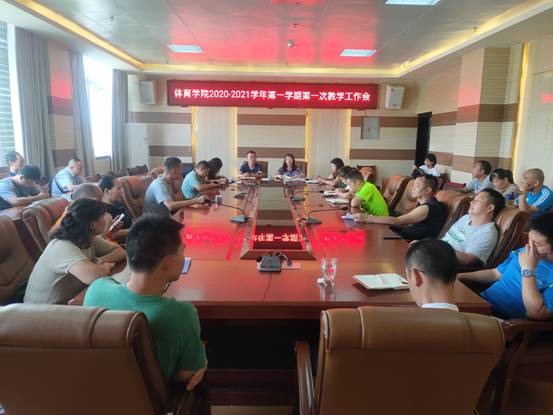 8月30日下午,体育学院2020-2021学年第一学期第一次教学工作会议召开,部署本学期工作,全体教职工参会。邓文红院长主持会议,党委书记孙黔发表讲话。