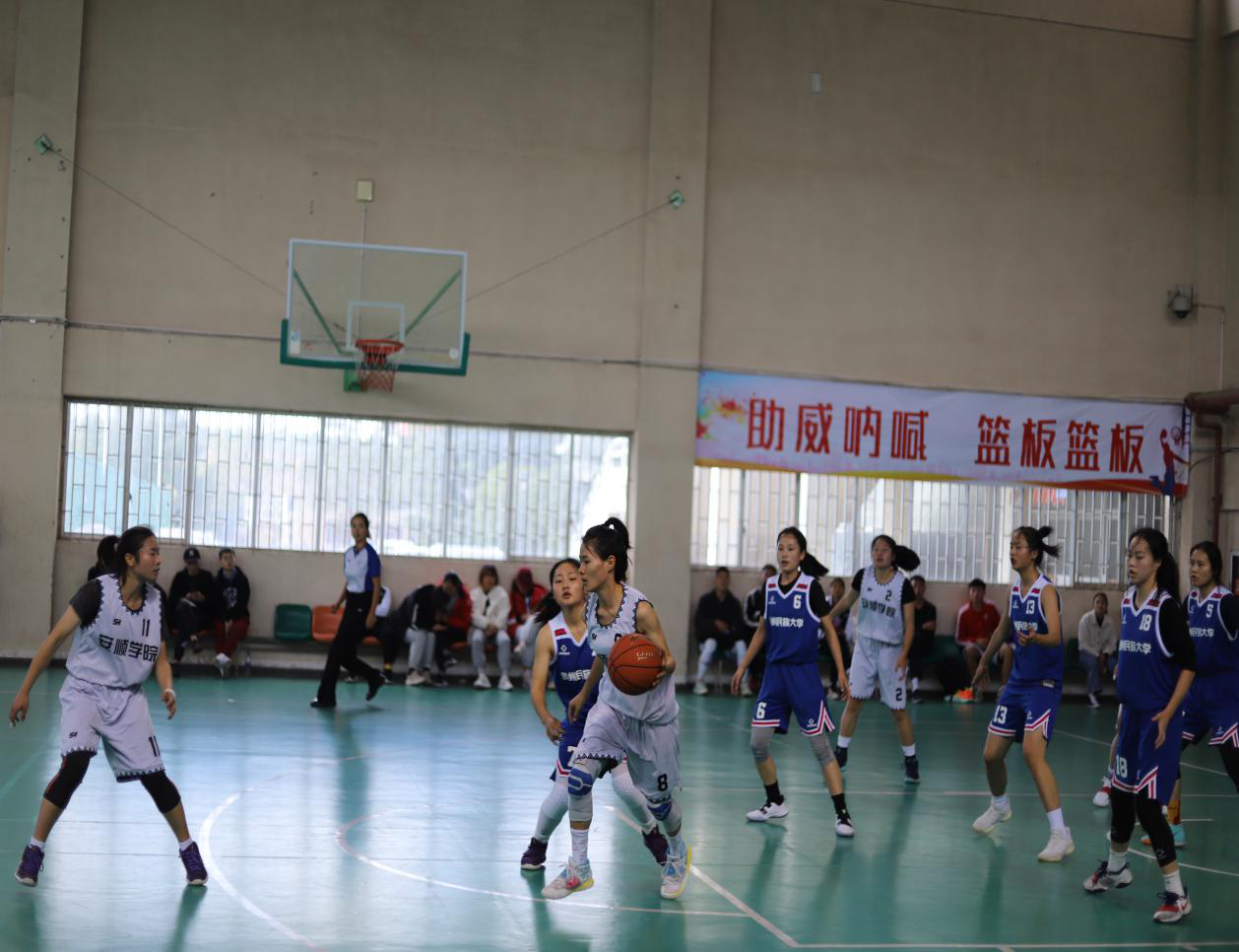 11月15日-23日,2020年全省大学生篮球赛暨CUBA选拔赛本科组比赛在贵州大学体育馆(花溪校区)举行,来自全省高校54支队伍600余人参加比赛。我校男队由刘清德、徐开朗担任教练;女队由金钊、张鲜杰担任教练。