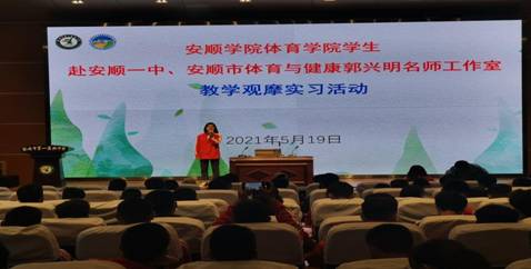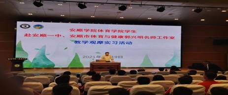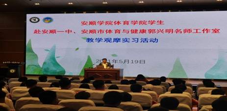 为提高安顺学院体育教育专业学生的教育教学水平,进一步加强高校与中小学的深度融合,推进体育理论教学与实践相结合,加强学生的实践能力培养,进一步熟悉中小学教学的规范与流程,积极交流和探索课堂教学的有效组织形式和经验,进一步深化课程改革,实施有效课堂教学,不断提高体育教育专业学生熟悉和了解新课程的实施情况,促进学生在理论与实践两个层面的发展。2019年5月19日下午安顺学院体育学院2019级体育教育班的全体学生在刘宁副院长和刘建国老师的带领下与安顺一中、安顺市高中体育与健康郭兴明名师工作室开展了模块教学观摩见习、研习活动。