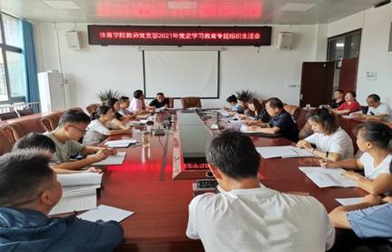 2021年7月23日,体育学院全体党员在体育学院会议室召开2021年党史学习教育专题组织生活会,会议由教师支部书记林金茹主持,学校纪委书记蔡红英,监察室副主任周彰波,监察室专员办公室综合室宣教科副科长尚小倩一行3人到会指导并讲话,体育学院全体党员同志参加会议。