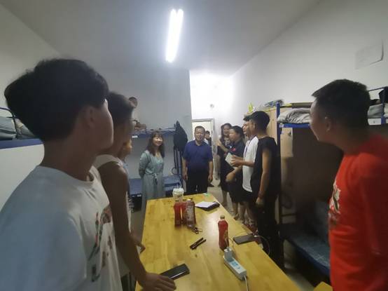 离开三号楼。老师们来到了女生宿舍五号楼,亲切地和同学们拉起家常,询问同学们学习,生活等方面的情况,解答同学们的问题,和同学们嘘寒问暖,提醒同学注意天气变化。