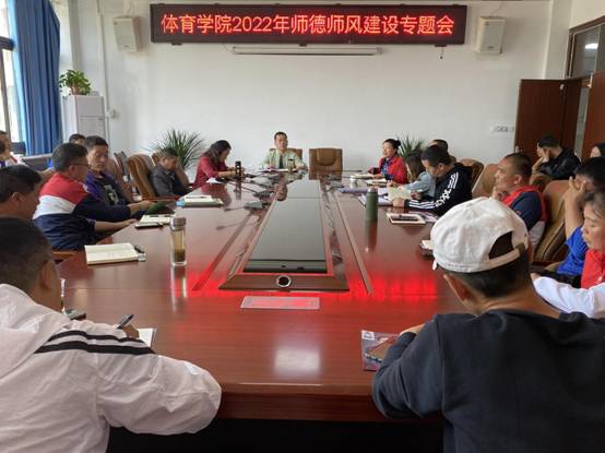 2022年4月25日,体育学院召开2022年师德师风建设专题会,就进一步贯彻落实安顺学院党风廉政建设和反腐败工作协调小组师德师风专题会议精神进行安排部署。体育学院全体教师参加会议。会议由体育学院书记孙黔同志主持。