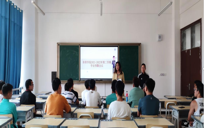 为做好学生学业监测与预警工作,体育学院于2022年3月21日召开2021-2022年第二学期学业预警会议,会议由体育学院副院长刘宁、教务科刘建国老师宣讲与解读。