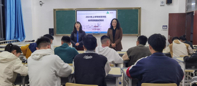 为贯彻新时代“三全育人”教育理念,提升学生教师资格证面试通过率。我院于2023年4月27日和5月8日在乐学楼J206教室开展2023年上半年的教师资格证面试为期二天培训工作,本次培训导师由体育学院院长邓文红、副院长刘宁担任,参加培训学生共近50人。