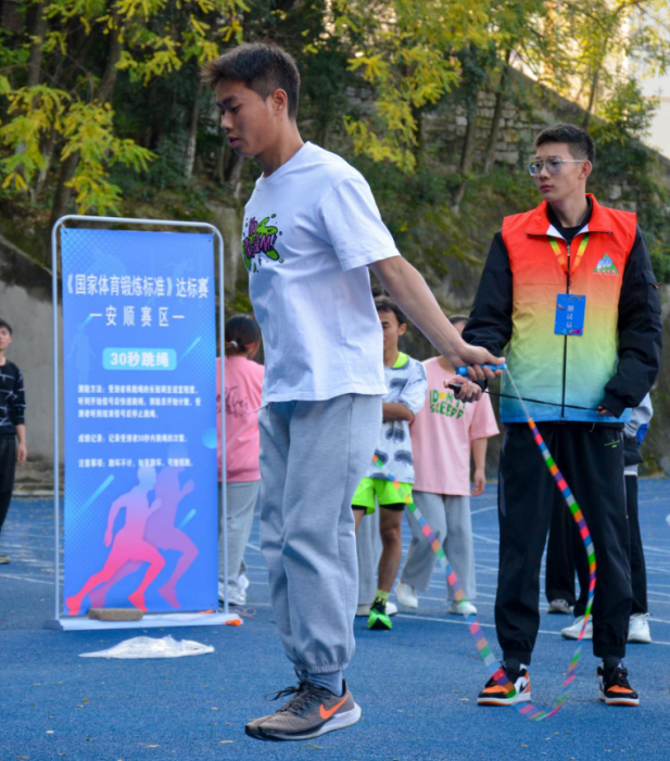 2023年11月29日,贵州省2023年《国家体育锻炼标准》(安顺赛区)达标赛在安顺学院顺利开赛。此次活动由贵州省体育局主办、安顺市文体广电旅游局承办,旨在进一步贯彻落实全民健身国家战略,激发广大人民群众参加体育锻炼的积极性和主动性,提高身体素质。