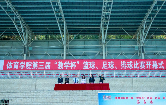 随后,体育学院党委书记孙黔同志宣布体育学院第三届篮球、足球、排球“教学杯”比赛开幕开幕。