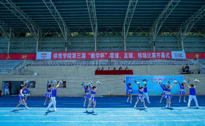 为落实立德树人根本任务,结合学院专业特点大力弘扬中华体育精神,全面推动学院三大球运动水平的发展,营造良好的学风,提升师范生实践技能、就业竞争力和综合素质,以体育人特有的方式传承体育精神,加强年级、班级交流,4月1日,体育学院第三届“教学杯”篮球、足球、排球比赛在田径场隆重开幕。本次“教学杯”篮球比赛以高质量党建引领学院教风学风建设,不断提高学院教育教学质量,促进学生身心健康全面发展。党委书记孙黔、院长邓文红、专职副书记林金茹、大学公共体育部副主任刘宁、团总支书记田宇、专职辅导员李老师和全体学生出席开幕式。