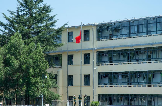 在嘹亮的国歌声中,全体成员起立,庄重的面向冉冉升起的五星红旗行注目礼。