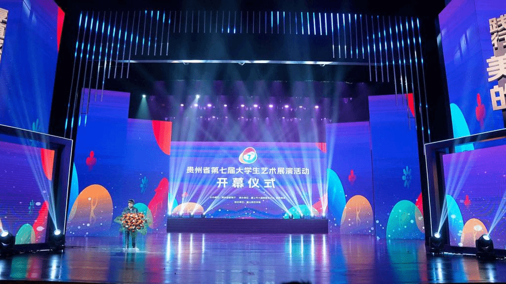 2024年5月8日至11日,贵州省第七届大学生艺术展演活动现场展演在遵义大剧院举行。安顺学院推报的作品《地戏》《月光下的中国》参加现场展演。