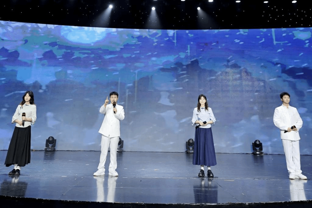 《月光下的中国》作品朗诵同学合影左起:付代海、程超、吴卓蓓、朱周
