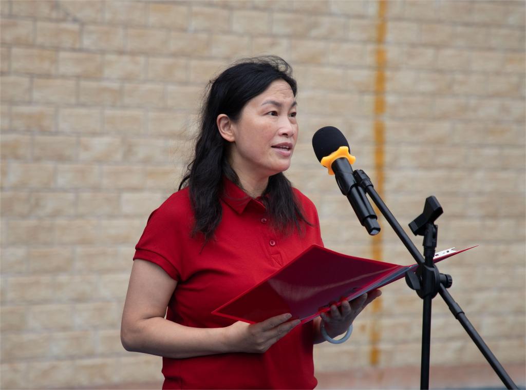 曾丽在致辞中指出,学校始终坚守立德树人根本任务,稳步推进“五育并举”与“三全育人”的工作理念,致力于促进学生德智体美劳全方位的发展,从而为体育强国的建设提供助力。我校一年一度的阳光体育运动暨田径运动会,旨在为师生打造一个展示体育才能的平台,让每位师生都能亲身参与体育活动中,共同营造“人人参与项目、天天坚持运动、活动贯穿全年”的积极氛围。全校师生应当从奥林匹克精神中汲取前行的动力,积极投身于运动场,融入大自然,沐浴在阳光下,驰骋在竞技场。让我们共同掀起阳光体育运动的热潮,营造珍爱健康、热爱体育、推崇运动、积极向上的校园文化,每个人都为这一崇高目标贡献自己的一份力量。