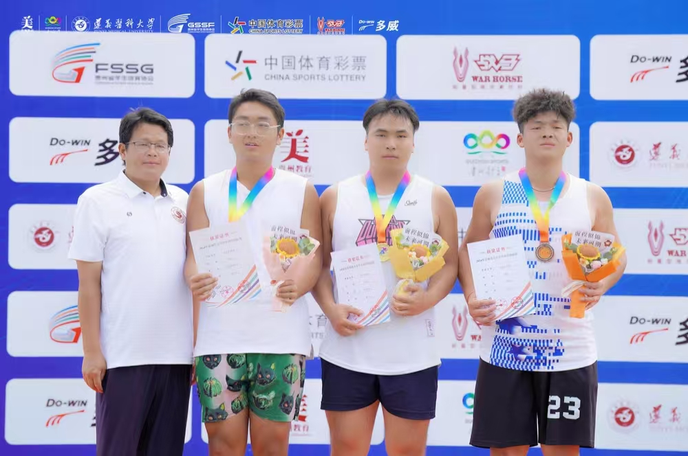 安顺学院2021级地理科学班柳胜获男子甲组铅球铜牌(右一)