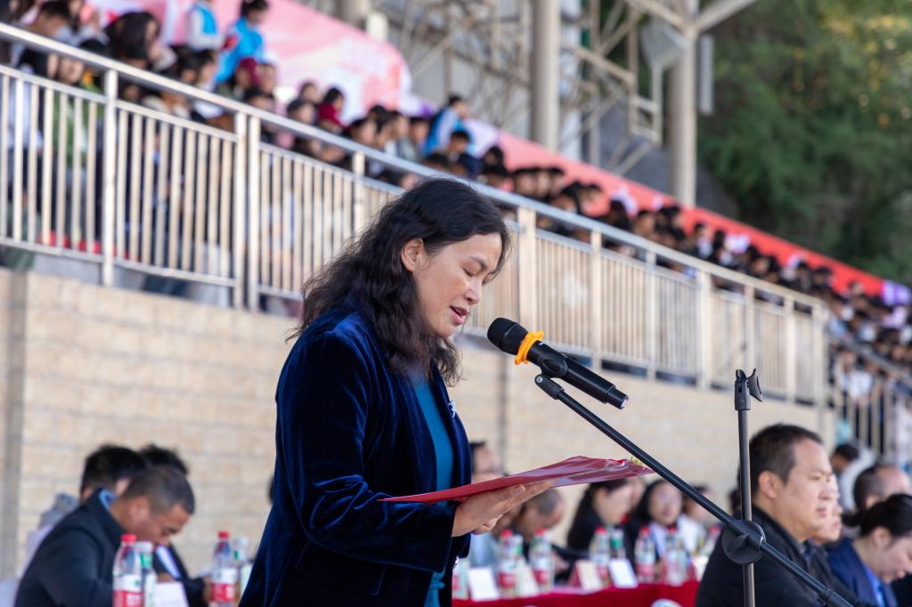 曾丽在致辞中指出,体育是五育并举中的重要组成部分,是培养德、智、体、美、劳全面发展的社会主义建设者和接班人的重要途径,学校一直以来高度重视体育工作,将体育教育作为立德树人的重要内容,全方面加强学校体育工作。体育不仅能够强健体魄,更能锤炼意志,培养学生的竞争意识和自我挑战的勇气,希望全体运动员和裁判员继续发扬“更快、更高、更强、更团结”的奥林匹克精神,以饱满的热情、昂扬的斗志投入到比赛中去,让此次运动会成为一次展示青春活力、传递体育精神的盛会。