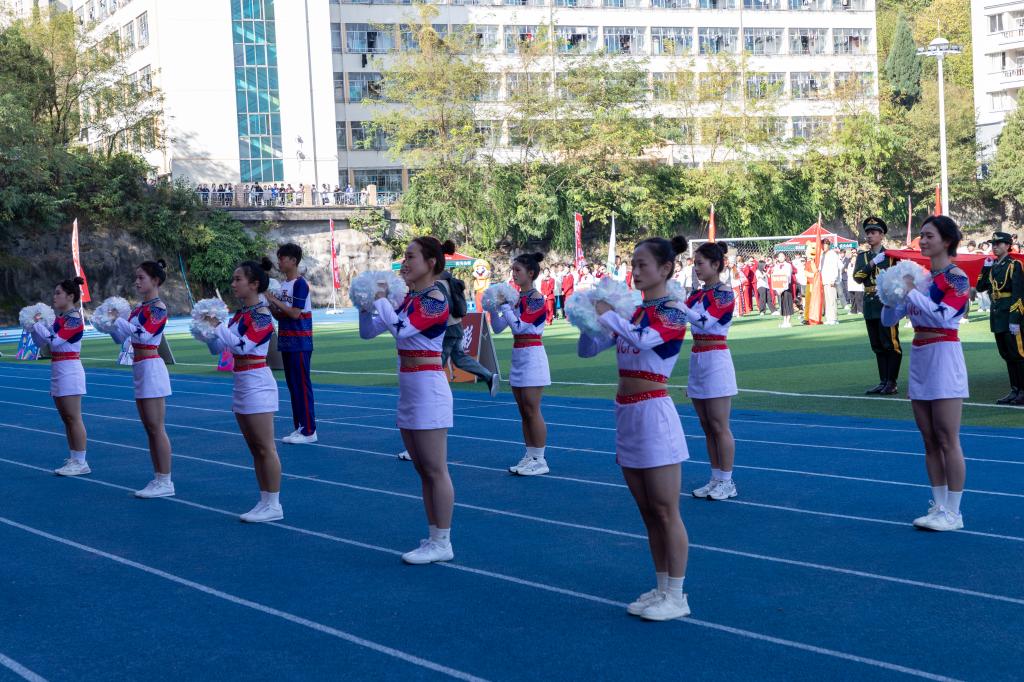 罗荣彬宣布安顺学院“农业银行杯”第九届体育文化节开幕。整个操场上响起了热烈的欢呼声。