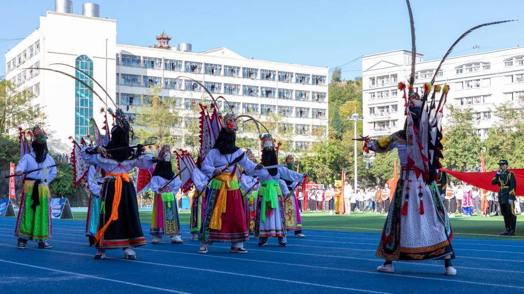 在开幕式节目表演上,太极拳表演宛如流动的水,舞者们的每个动作都如诗般和谐。紧接着,地戏的表演热闹非凡,演员们在舞台上讲述着那段悠久的历史。啦啦操热情洋溢,欢快的节奏将气氛推向高潮。最后,二重唱《我爱你中国》声甜如蜜,旋律悠扬,为这场盛会增添了无尽的韵味。