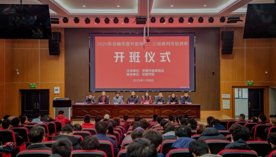 2025年11月8日上午9时,由安顺市篮球协会主办、安顺学院体育学院协办的2025年安顺市篮球二三级裁判员培训班开班典礼,在安顺学院博学楼A12教室举行。典礼由市篮协副主席陈宏熙主持,市文体广电旅游局副局长赵雯、省篮协副主席敖军、市篮协主席李敏克、安顺学院体育学院党委书记孙黔等出席,全体参训学员参加。