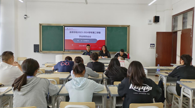 为做好学生学业监测与预警工作,2024年5月13日体育学院召开2023-2024年第二学期学业预警会,大学公共体育教学部副主任刘宁、教务科科长刘建国、副科长燕鹏斌,2021至2022级10名学生参加会议。