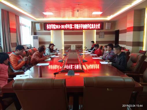 为进一步了解学生的学习和教师教学情况,提升教学质量,加强学风和教风建设。3月4日下午,体育学院召开了2018--2019学年第二学期开学初教学信息会议。副院长刘宁、党委副书记林金茹、教务科长刘建国、学生科长谢迪、教研室主任以及各班教学信息员参加会议,会议由刘宁副院长主持。