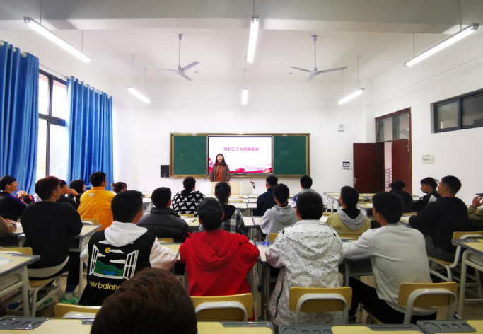 邓文红从党的二十大的主题和主要成果;党的二十大的主要精神和丰富内涵;认真做好党的二十大精神的学习宣传贯彻;深入贯彻党的二十大精神,积极融入科教兴国战略,推动安顺学院特色高质量发展四个方面,对党的二十大精神进行了认真解读。