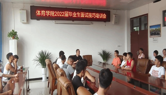 2022年4月22日中午12点,安顺学院体育学院在体育学院会议室举行2022届毕业生面试技巧培训会,此次面试技巧培训会由体育专职辅导员田宇主讲,2022届部分毕业生参加。