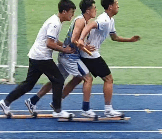 当正要迎来赛事时,部分女队员却因一些原因做了替换,这时女队员们不得不从头开始,重新磨合,付出比男队员们更加倍的辛苦和努力;在训练加速跑时,往往因为一个人的小小失误导致整个板摔跤;但这正是板鞋的魅力之处,需要三个人的完美默契配合。